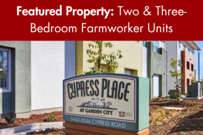 Cypress Place consta de 90 viviendas multifamiliares asequibles para hogares con ingresos iguales o inferiores al 80% del Ingreso Medio del Área (AMI). También se reservan 43 unidades para hogares de trabajadores agrícolas con ingresos entre el 30 y el 60% del AMI.
